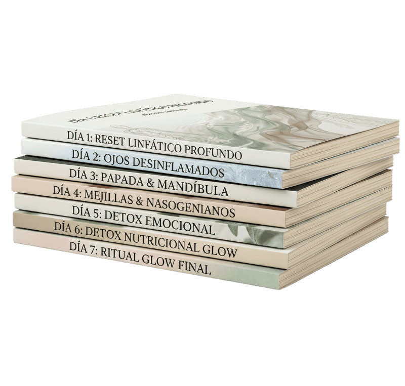 Un recorrido práctico y progresivo donde cada día trabajas una zona específica: drenaje linfático, ojos, papada, mejillas, tensión emocional y hábitos antiinflamatorios.